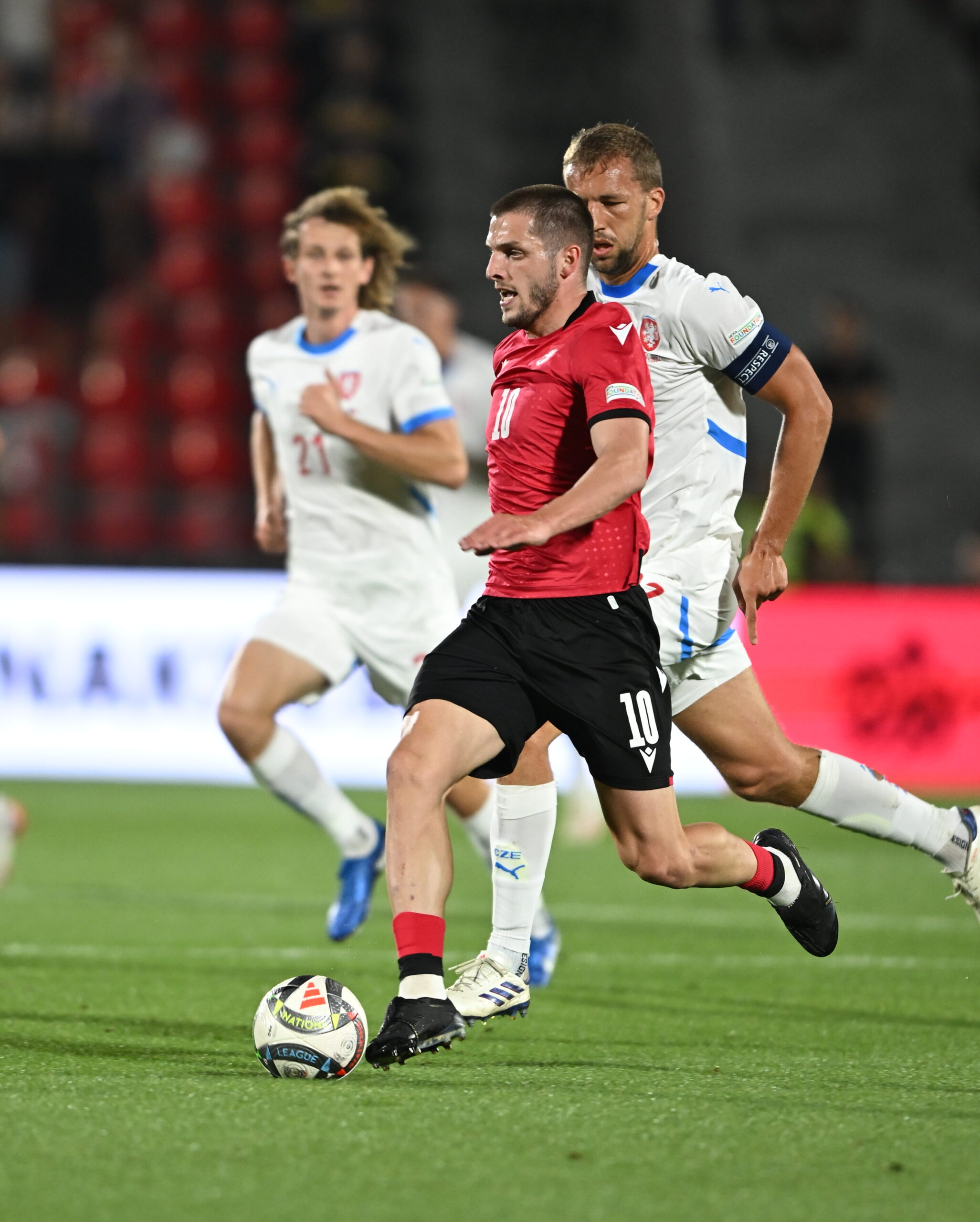 მართალია, მე-80 წუთზე ჩეხებმა ერთი ბურთისგაქვითვა მოახერხეს, თუმცა საერთო ჯამში მათბევრი საგოლე შანსი არ ჰქონიათ და უშეცდომო იყოროგორც ჩვენი საყრდენი ზონა, ისე დაცვის ხაზი დამეკარე. კიდევ ერთხელ დავრწმუნდით, თუ რა დიდიმნიშვნელობა აქვს ჩვენი ნაკრებისთვის კიტეიშვილი-ქოჩორაშვილის დუო მოედნის ცენტრალურ ზონაში – ბურთის ზურგით მიღება, ტრიალი, გამჭოლი პასები, პოზიციური თამაში და ყველა იმ მნიშვნელოვანკომპონენტს, რაც ცენტრალურ ნახევარმცველებსმოეთხოვებათ, ეს წყვილი ევროპის ჩემპიონატიდანდღემდე უფრო და უფრო ხვეწს და იდეალურისკენმიდის.