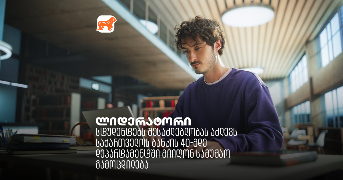 ერთ-ერთი ასეთი პროექტია “ლიდერატორიც” – სტუდენტური პროგრამა, რომელიც მათ შესაძლებლობას აძლევს საქართველოს ბანკის 40-მდე დეპარტამენტში მიიღონ სამუშაო გამოცდილება.