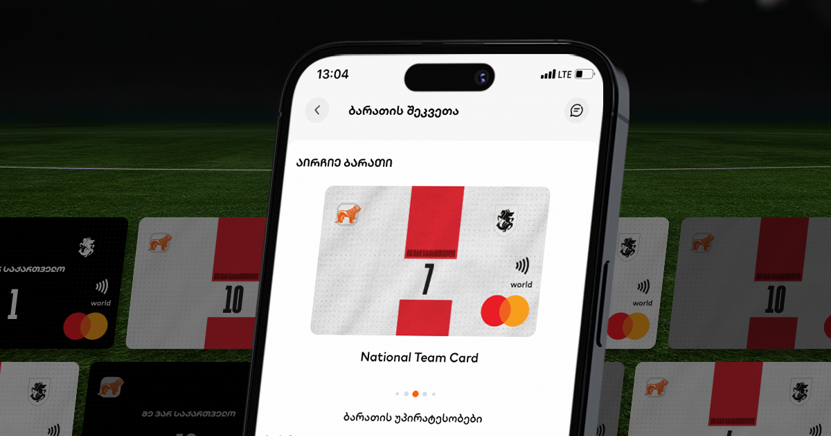 ამ ბარათის აღებას 23 სექტემბრამდე მობილბანკში სრულიად უფასოდ შეძლებ და ყველაზე მთავარი – შეგიძლია, შენ თვითონ შეარჩიო ბარათის დიზაინი საყვარელი ფეხბურთელის ნომრით. გარდა იმისა, რომ კიდევ ერთი ფორმით შეძლებ, ეროვნულ ნაკრებს დაუჭირო მხარი, ამ ბარათს კონკრეტულად ფეხბურთის გულშემატკივრებზე მორგებული შეთავაზებები აქვს – ეროვნული ნაკრების ოფიციალურ საგულშემატკივრო მაღაზიაში fanshop.ge მუდმივ, 15%-იან ფასდაკლებას მიიღებ და თუ 8 სექტემბერს საქართველო-ესპანეთის მატჩს დაესწრები, სტადიონზე მდებარე საკვებ ობიექტებში გადახდილი თანხის 50% დაგიბრუნდება (მაქსიმუმ 50 ლარი). ბარათის ასაღებად ფილიალში მისვლა არ არის საჭირო, მის გააქტიურებას მობილბანკში ან ვებგვერდზე, რამდენიმე კლიკით მარტივად შეძლებ.
