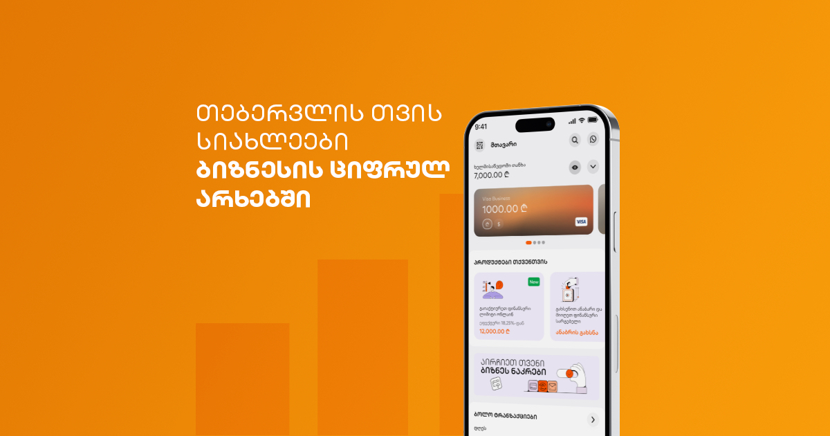 საქართველოს ბანკი გაცნობებთ თებერვლის ციფრულ სიახლეებს! ბიზნეს ნაკრები, სატენდერო გარანტიები და ბარათის მარტივი შეკვეთა – დაზოგეთ დრო და გაამარტივეთ თქვენი საქმიანობა.