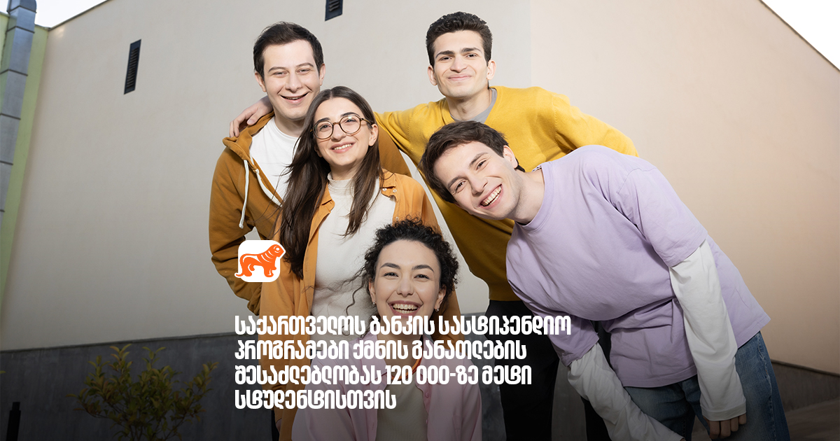 საქართველოს ბანკი ნიჭიერი და მიზანდასახული ახალგაზრდებისთვის განათლების შესაძლებლობების შექმნას განაგრძობს. სწორედ ამ მიზნით, სასტიპენდიო პროგრამებს ახორციელებს, რომლის ფარგლებშიც საქართველოს მასშტაბით 120 000-ზე მეტ სტუდენტს აძლევს შესაძლებლობას, მიიღონ სწავლის სრული ან ნაწილობრივი დაფინანსება.