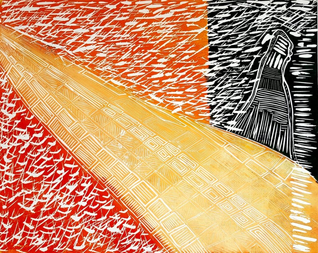 მასალა: ლინოლეუმი, ქაღალდი. ნამუშევრის ზომა: 43 x 50 სმ. შეზღუდული რაოდენობით, 7 პრინტი. ფასი: 1 770 ლარი.