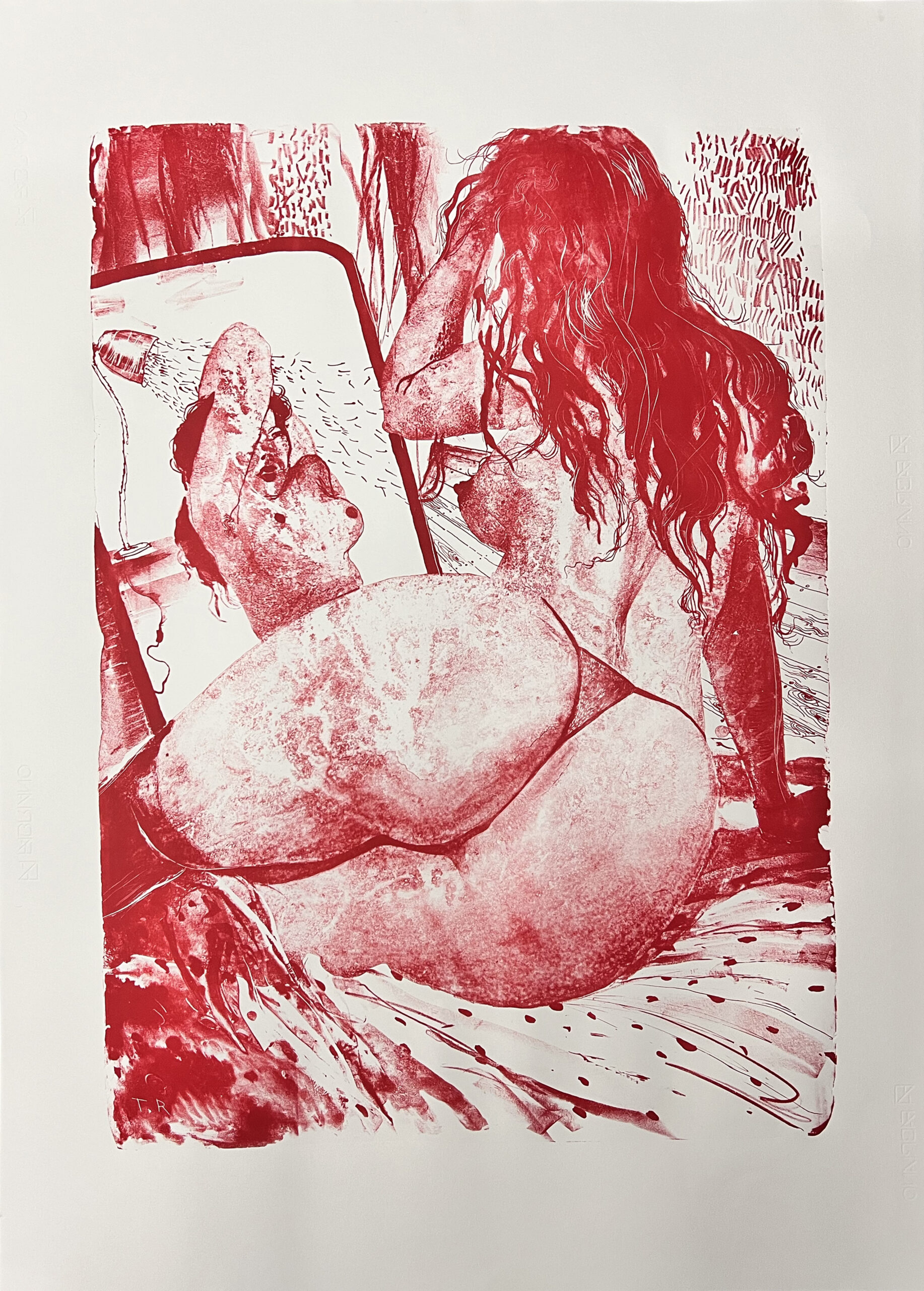 მასალა: უნიკალური ლითოგრაფია, სილქსკრინი ქაღალდზე და გამჭვირვალე ფილმზე. ნამუშევრის ზომა: 97 x 63 სმ. ფასი: 2 360 ლარი.