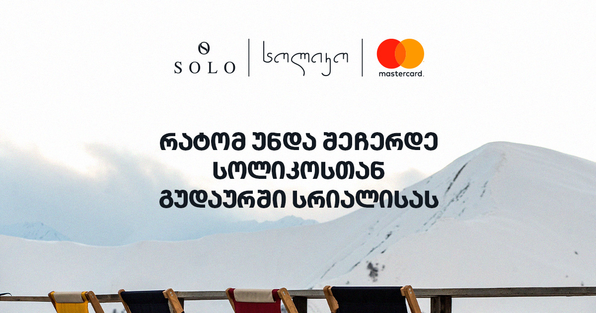 ისღა დაგრჩენიათ, დატკბეთ ზამთრის სეზონით, ისრიალოთ თოვლზე, დაელოდოთ „სოლიკოს“ ივენთების ანონსს, ესტუმროთ ულამაზესი ხედებით გარშემორტყმულ კაფეს და ისარგებლოთ SOLO და Mastercard-ის ყველა შეთავაზებით.