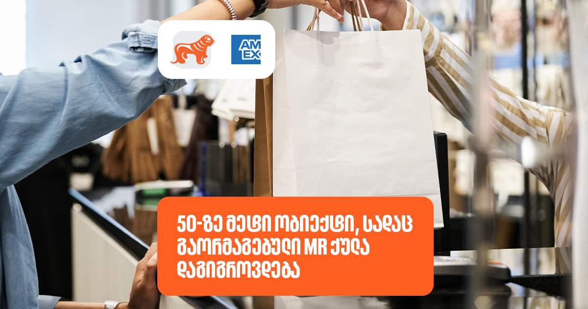 წლის ბოლომდე გაქვს შანსი 50-ზე მეტ ობიექტში სტანდარტულზე 2-ჯერ მეტი MR ქულა დააგროვო. აქცია ყველა კატეგორიის მაღაზიაში მოქმედებს და ქვემოთ მოგიყვებით, თუ სად შეძლებ ქულების გაორმაგებასა და სასურველი ნივთისთვის თანხის უფრო მალე შეგროვებას ყოველდღიური გადახდებით. თანაც, ეს მაღაზიები მეტწილად ერთ სივრცეში – მოლებშია წარმოდგენილი და ქულების დაგროვებასთან ერთად დროის დაზოგვასაც შეძლებ ნებისმიერი ტიპის ნივთის შესაძენად.