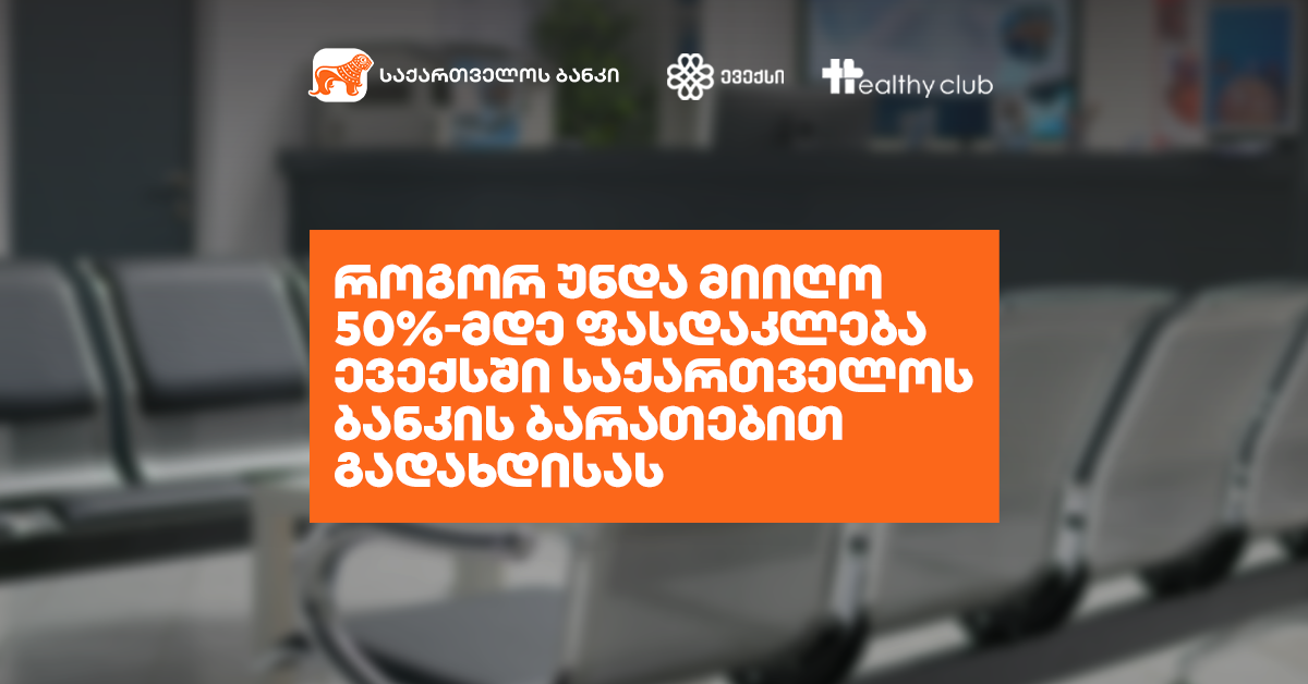 საქართველოს ბანკისა და ევექსის Healthy Club-ით მიიღე 15%-დან 50%-მდე დაფინანსება სამედიცინო სერვისებზე. იზრუნე ჯანმრთელობაზე და დაზოგე ფული!