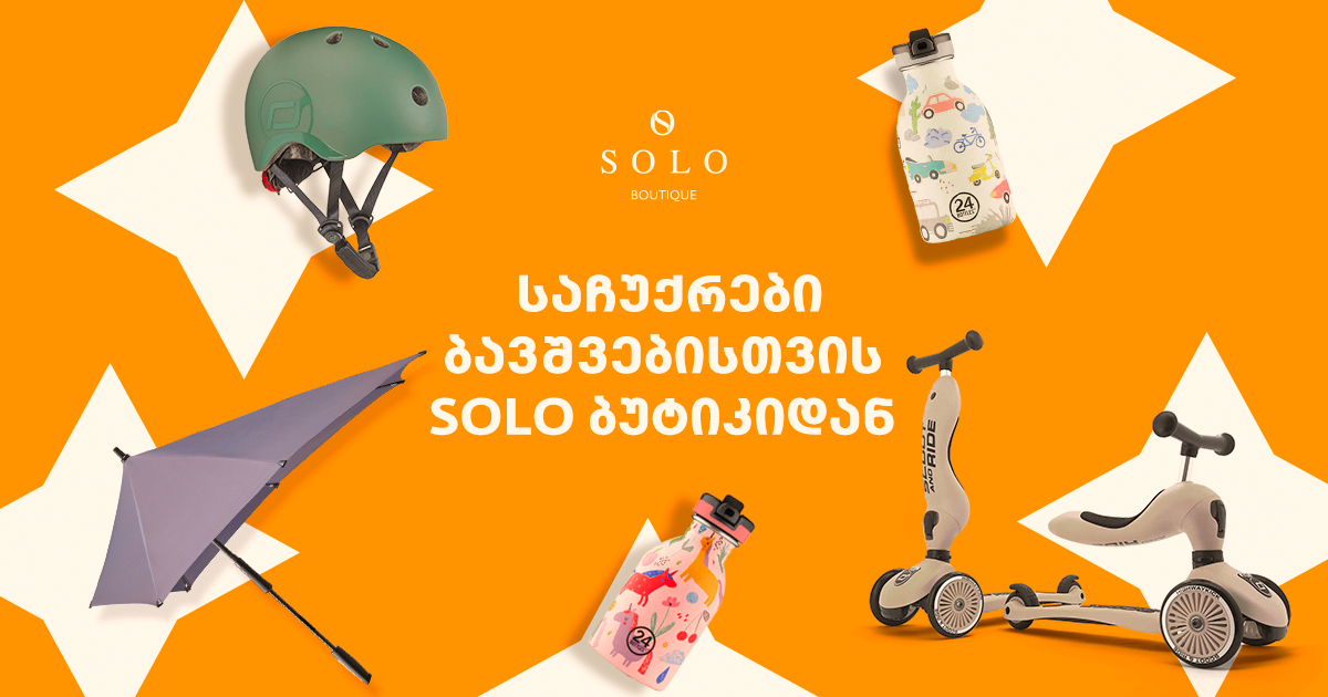 უკვე ყველამ იცის, რომ თუ რამე განსაკუთრებულ და დასამახსოვრებელ საჩუქარს ეძებს, SOLO ბუტიკს უნდა ესტუმროს, რადგან მხოლოდ აქ არის შესაძლებელი, ექსკლუზიური ბრენდების ერთმანეთზე უკეთესი ნივთების შეძენა და, რა თქმა უნდა, ბუტიკში მრავლად არის საბავშვო პროდუქციაც.
