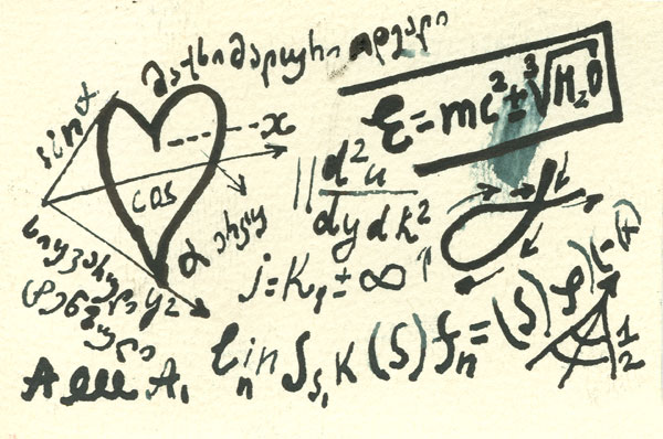 “სიყვარული… სიყვარულია მშობელი ოცნებისა, ოცნება აღვიძებს კაცთა მოდგმის მთვლემარე გონებას, გონება აღძრავს ქმედებას, პლიუს-მინუს, ემ ცე კვადრატ (mc²), ეф, ფუძე (√) ვნებათაღელვის უსასრულობისა და შეცნობილი აუცილებლობისაკენ! მიდით ერთაოზ!”